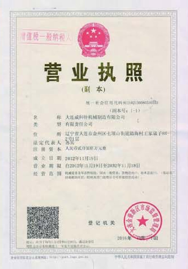 大連威科特成立于2003年,2012年搬遷至大連金州經濟技術開發區。公司注冊資本2500萬元,占地面積25000m2,辦公地點位于大連開發區遼河西路73號融通大廈。公司現擁有員工68人,中高級職稱人數15人,技工30人以上,公司已通過ISO9001:2015質量管理體系認證,擁有多項專利技術,經過多年的發展,逐漸形成了一支素質過硬、制造經驗豐富的管理、技術和生產團隊,保證了公司的持續發展和創新能力。
